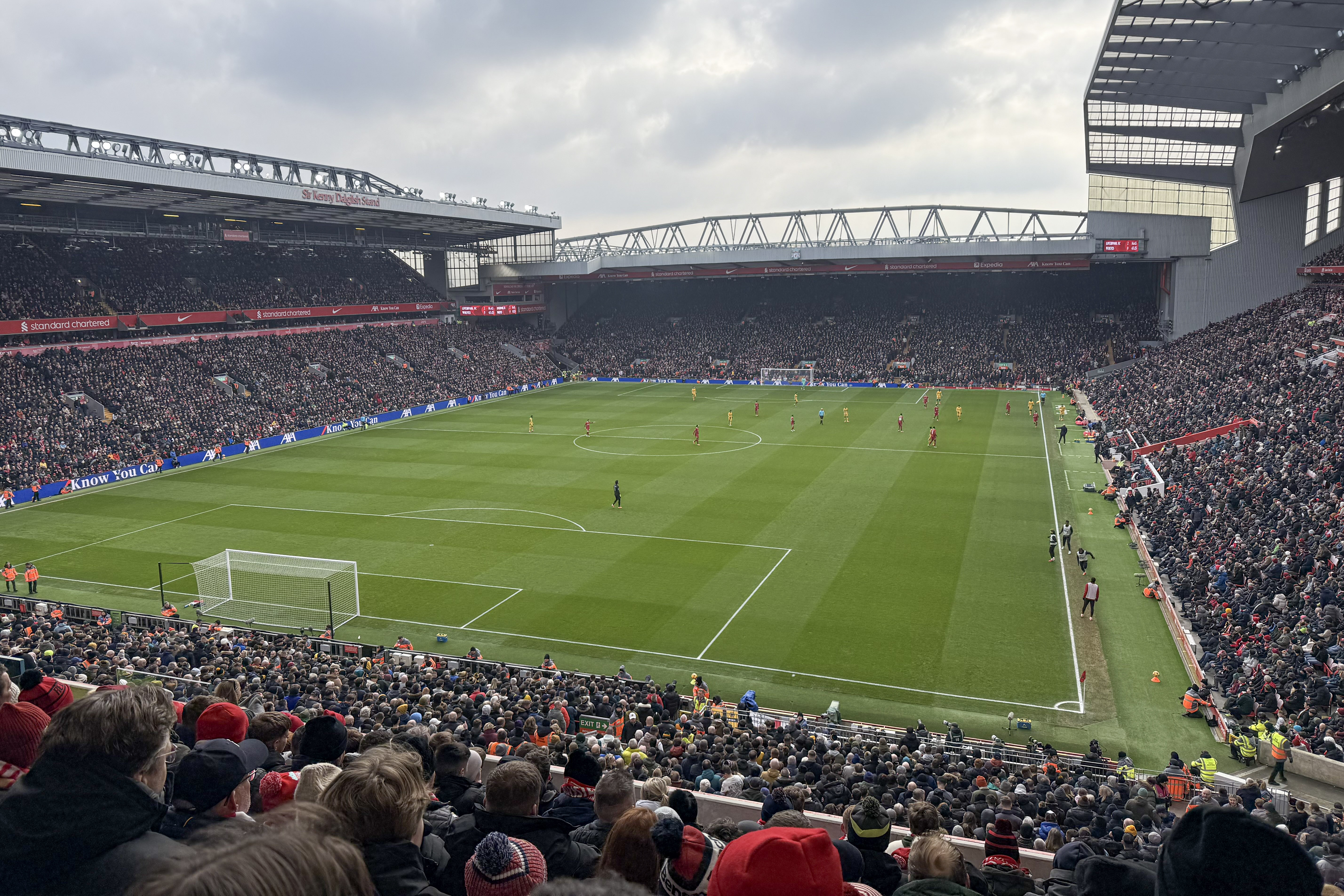 Liverpool started strong, leading 2-0 at halftime, but Wolverhampton pulled one back in the second half, making for a tense finish. The home team held on to secure a 2-1 victory—much to the delight of most of the travelers.